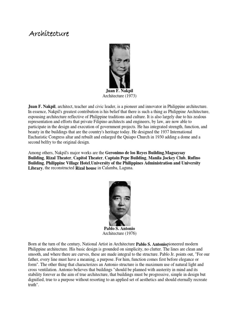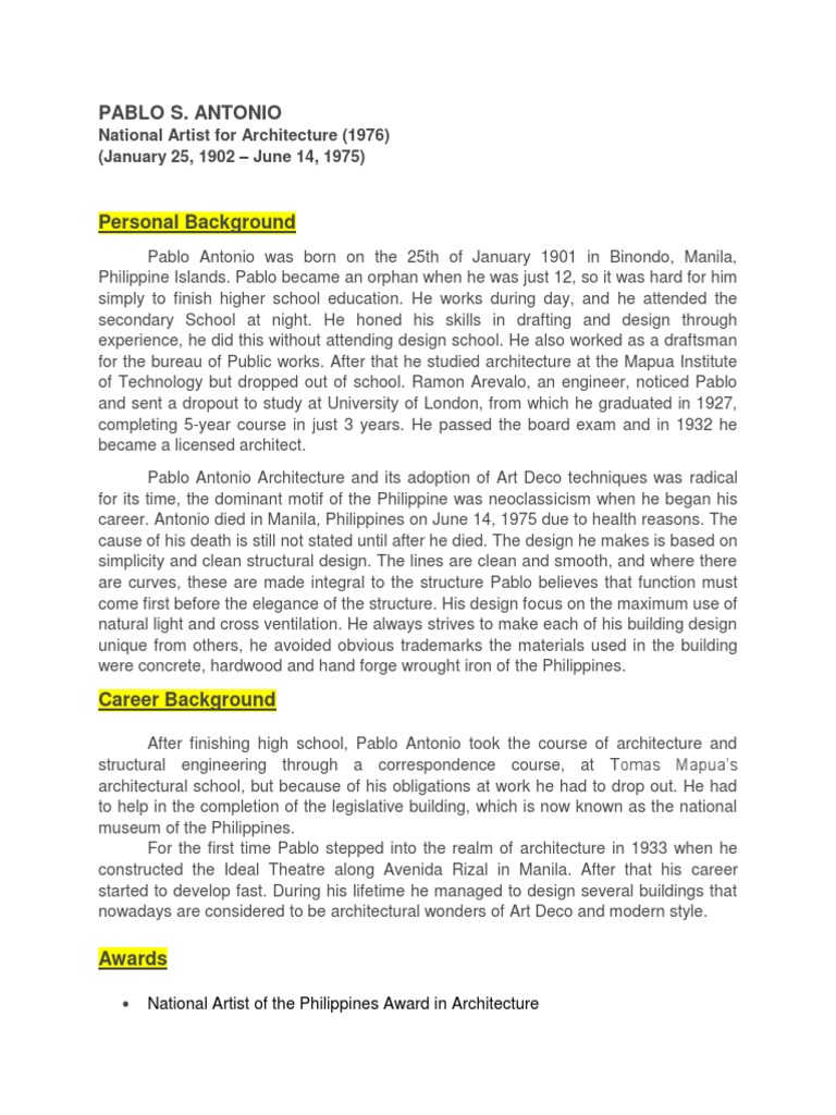 A pioneer of modern philippine architecture, he was recognized in antonio was born in binondo, manila in 1901. Pablo antonio, national artist in architecture. Malarayat golf and country club in lipa, batangas, and orchard golf and. Far eastern university administration and science buildings; Born at the turn of the century, national artist for antonio's major works include the following: